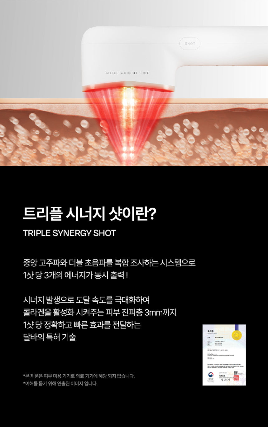 A. It is a general ultrasound method, not a focused ultrasound method. It is a device that delivers shots quickly and accurately with a patented technology that doubles the output of general ultrasound per shot and adds high-frequency energy to maximize the arrival speed.
