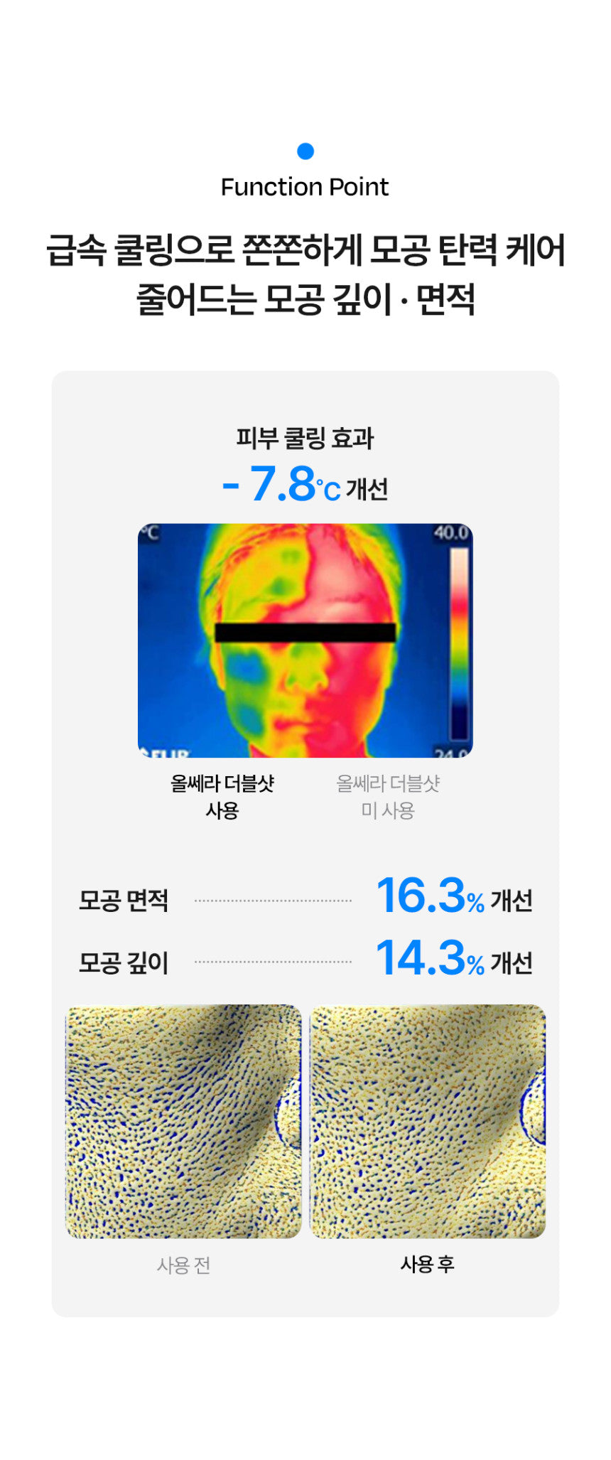 This mode reduces skin temperature by -7.8°C, minimizing pore depth and area for smoother skin texture and refined appearance: