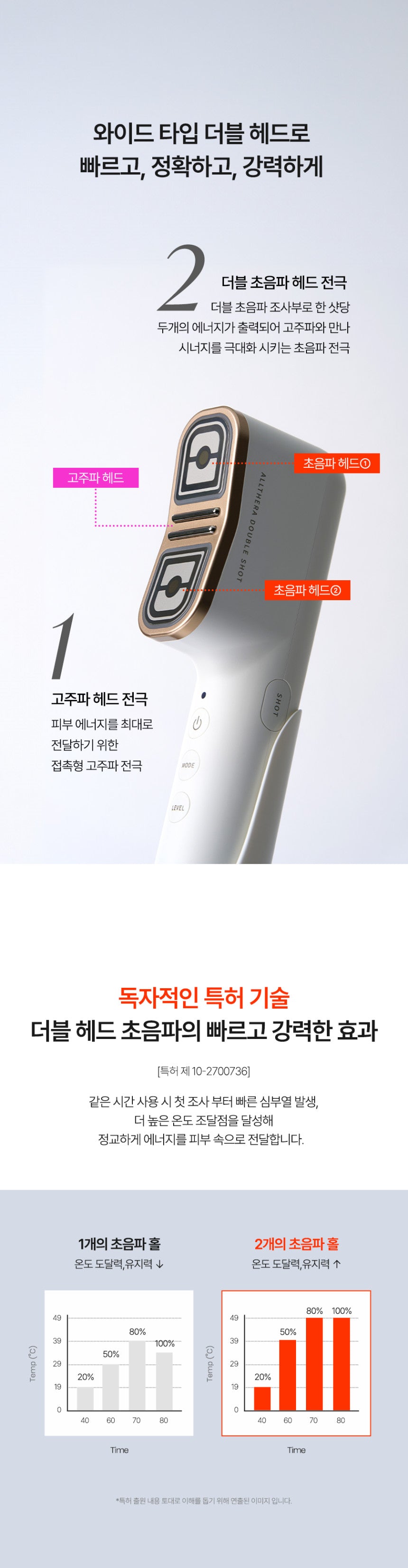 A. It is a general ultrasound method, not a focused ultrasound method. It is a device that delivers shots quickly and accurately with a patented technology that doubles the output of general ultrasound per shot and adds high-frequency energy to maximize the arrival speed.