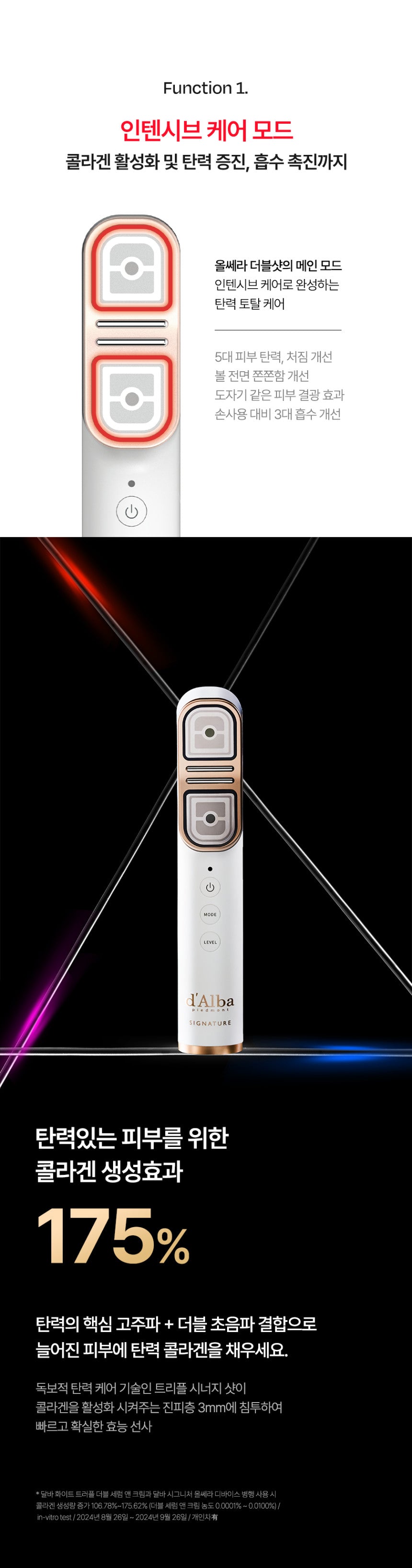 d’Alba’s patented Triple Synergy Shot technology penetrates the dermal layer to 3mm, providing rapid and targeted results. Combining central high-frequency and dual ultrasound, this system activates collagen production deep within the skin (Patent No. 10-2700736).