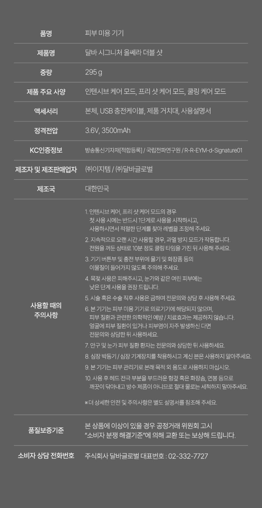 - Cooling Care Mode (3 Minutes): Reduces skin temperature to -7.8°C, calming and minimizing pores.