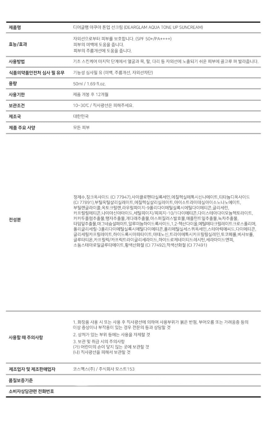 10 reviews for DEARGLAM Aqua Tone Up Suncream 50ml