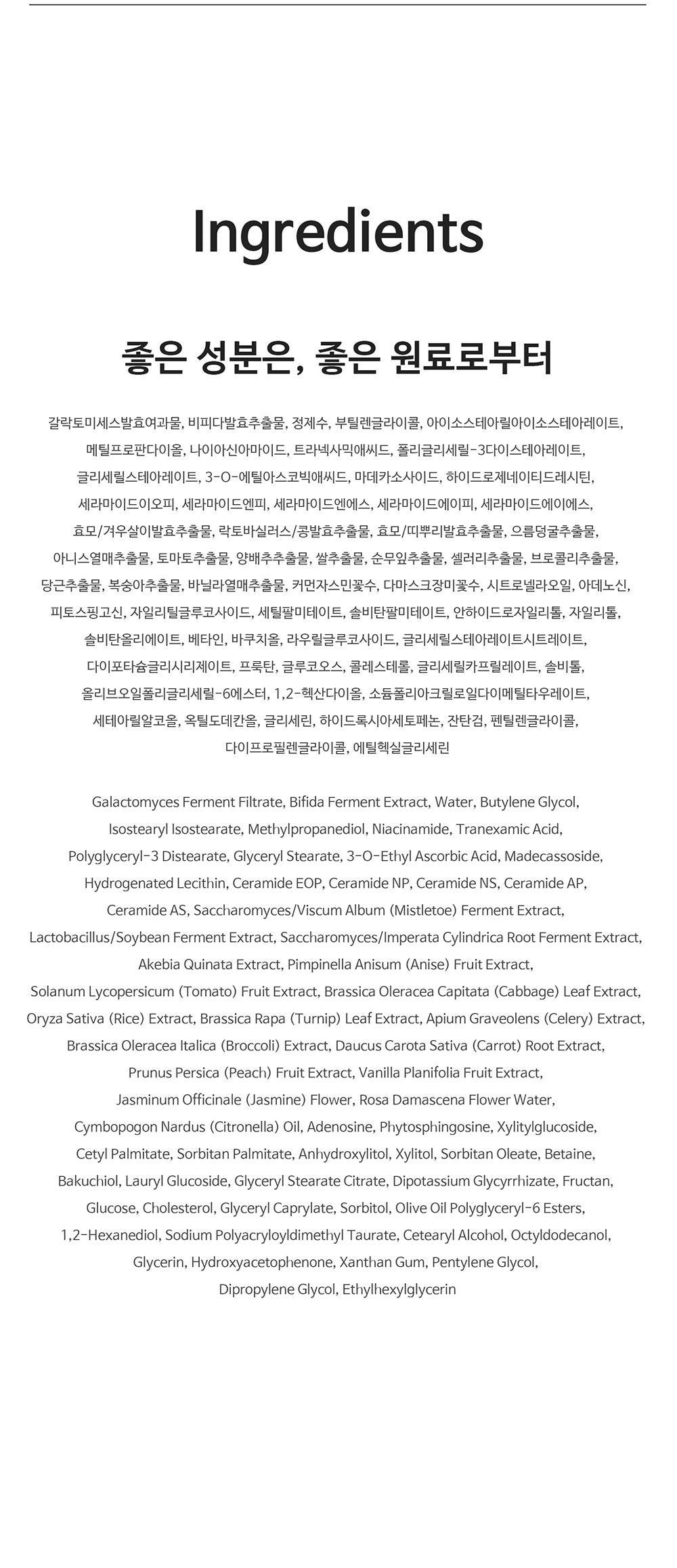 - Fermented Extracts: Galactomyces, Bifida, Saccharomyces for barrier repair and nourishment.