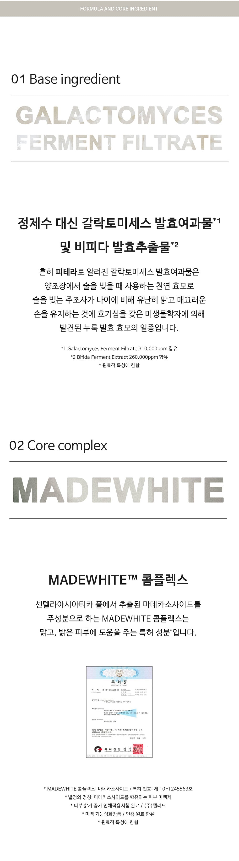 - MADEWHITE™: Derived from Centella Asiatica, it promotes bright, even skin.