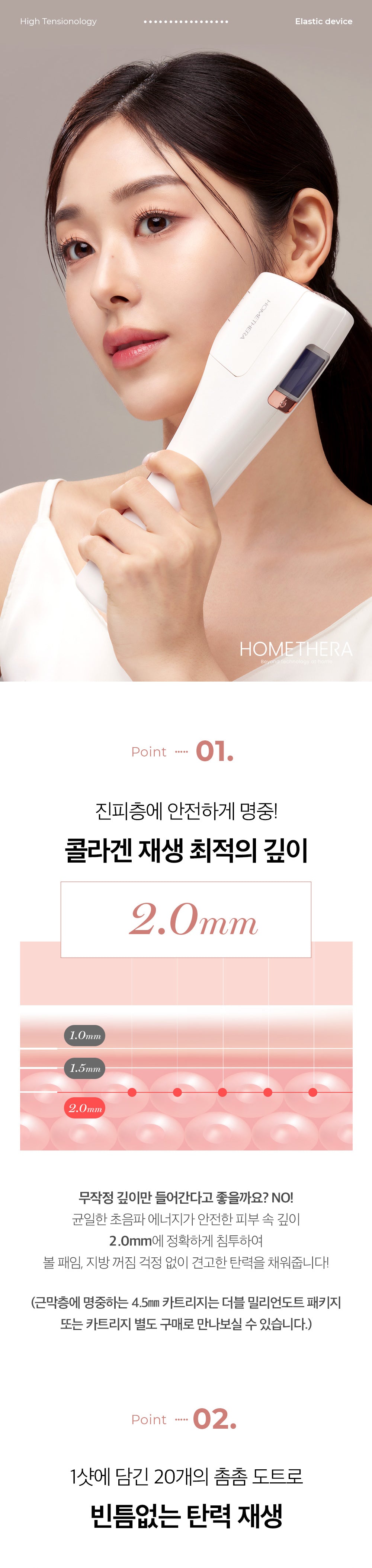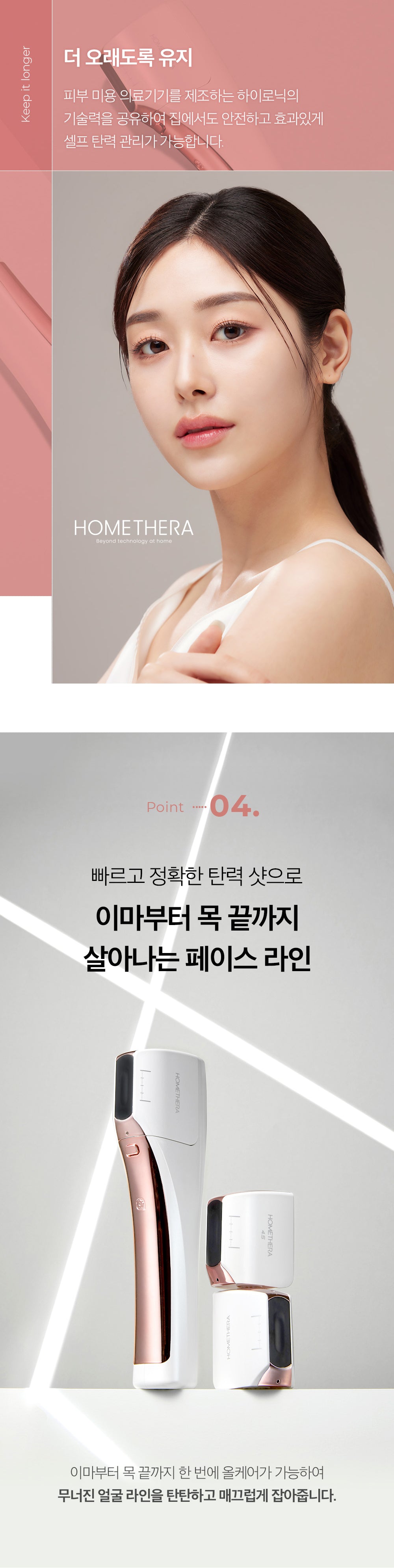Experience advanced skin tightening care at home with HOMETHERA, the first home-use HIFU (High-Intensity Focused Ultrasound) device in Korea. HOMETHERA utilizes patented HIFU technology to deliver professional-grade skin elasticity treatment from the comfort of your home.