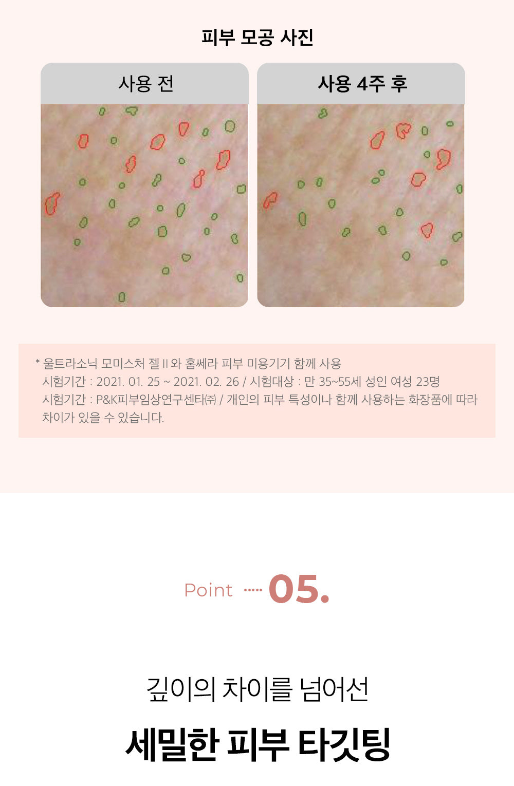 - Ultra Sonic Moisture Gel: Enhances ultrasound transmission, improves moisture, and has anti-wrinkle and brightening effects.