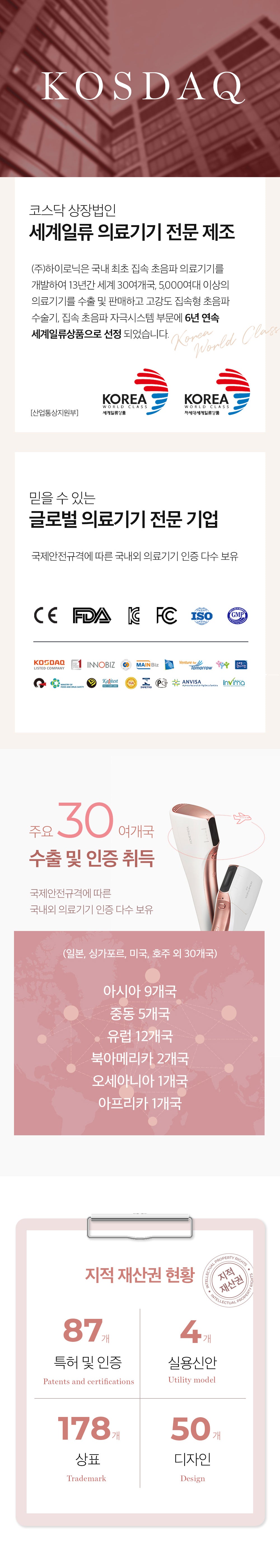 - Technology Leader: First to patent HIFU technology for home use in Korea.