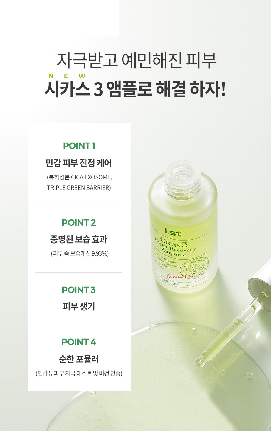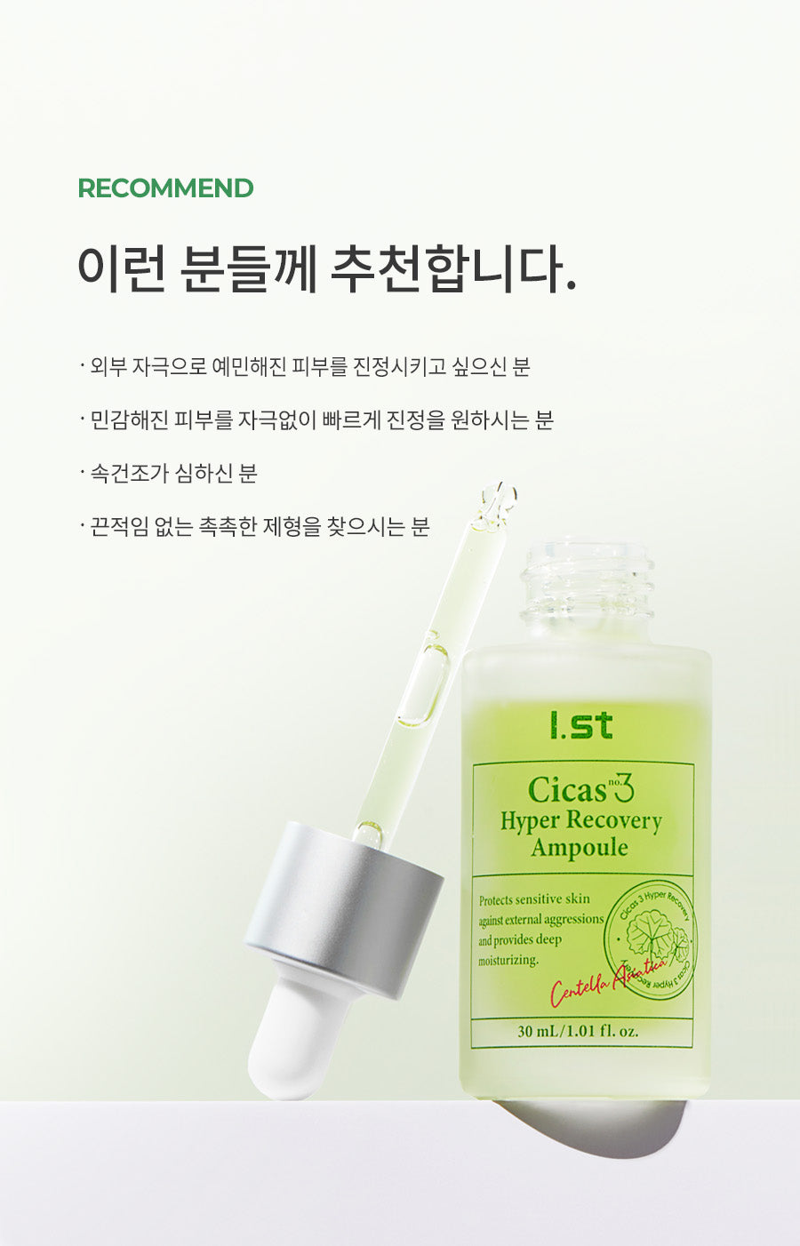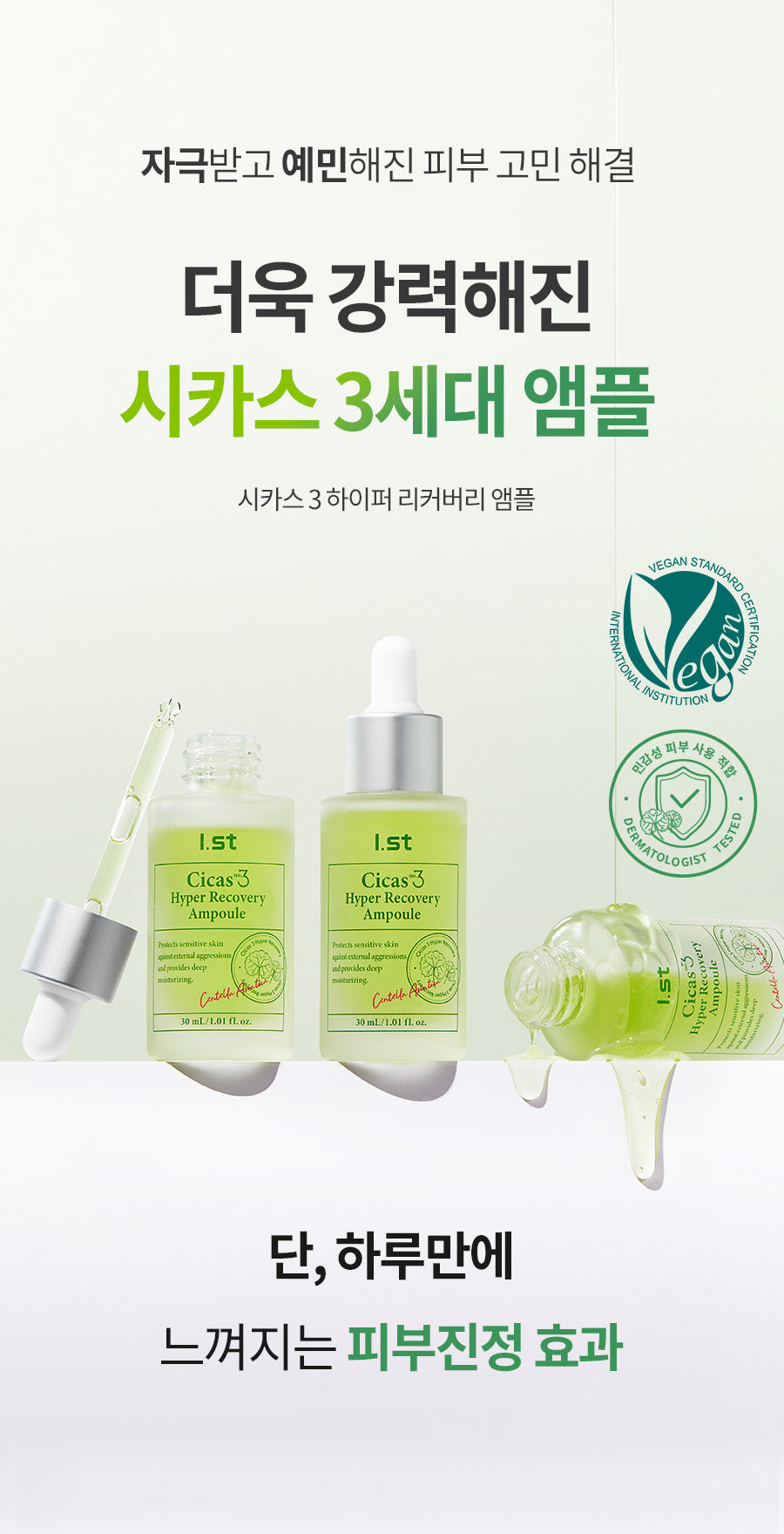 I started using the I.st Cicas 3 Hyper Recovery Ampoule a week ago, and I’ve already noticed remarkable changes. This ampoule is specifically formulated for sensitive skin, and it truly delivers on its promise of soothing irritation within just one day. The texture is lightweight and absorbs instantly without leaving any greasy residue. Additionally, it’s clinically proven to improve moisture levels in the skin; my face feels plumper and healthier after each application. I’m particularly impressed by how well it calms redness caused by environmental stressors—definitely a must-try for anyone with reactive skin.