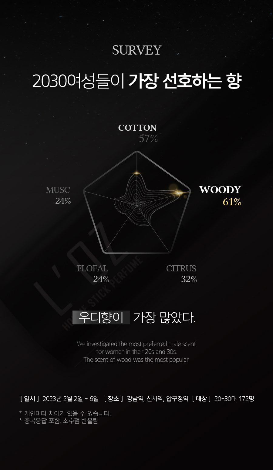 Crafted with the most preferred fragrances among women in their 20s and 30s, this stick-type men’s perfume blends soft and sexy woody notes for a scent that is both gentle and alluring.