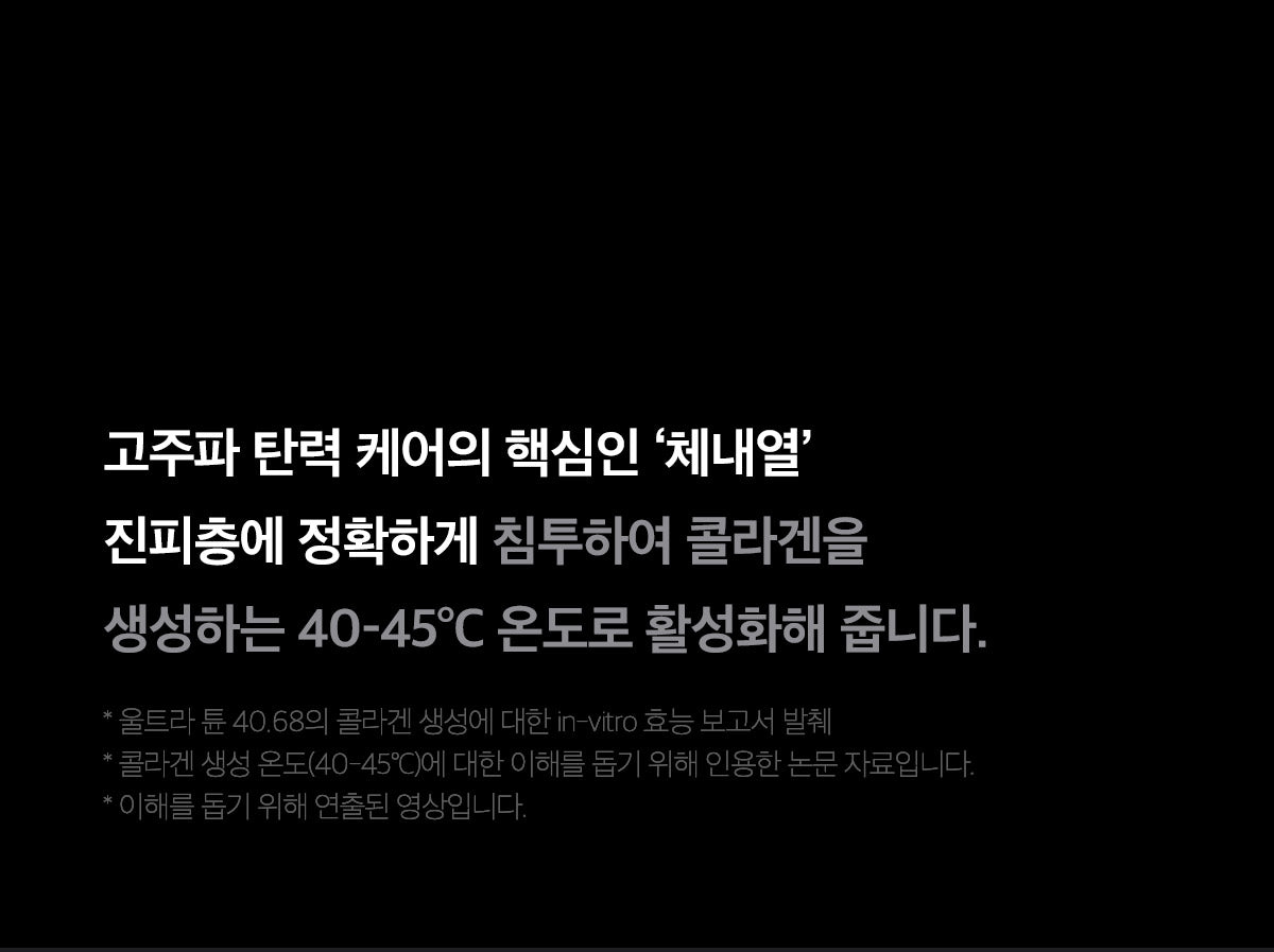 ‘Internal heat,’ the core of high-frequency elasticity care, accurately penetrates the dermal layer and activates collagen production at temperatures of 40-45ºC.