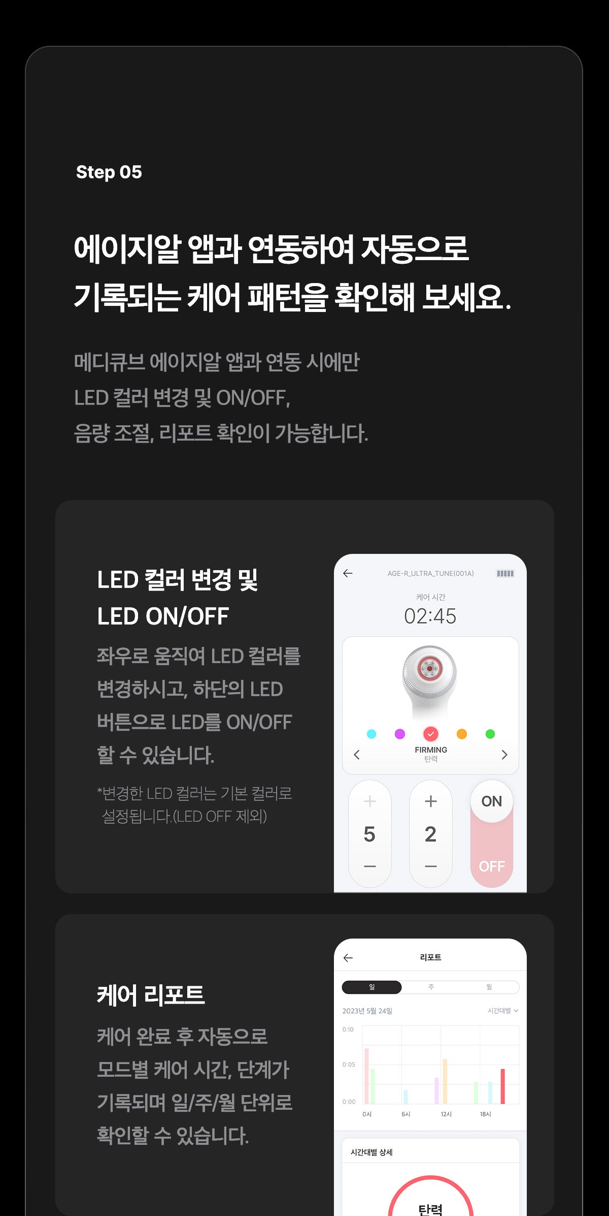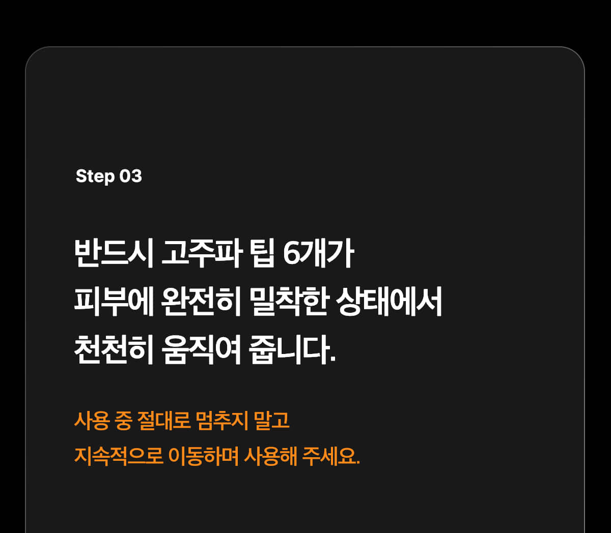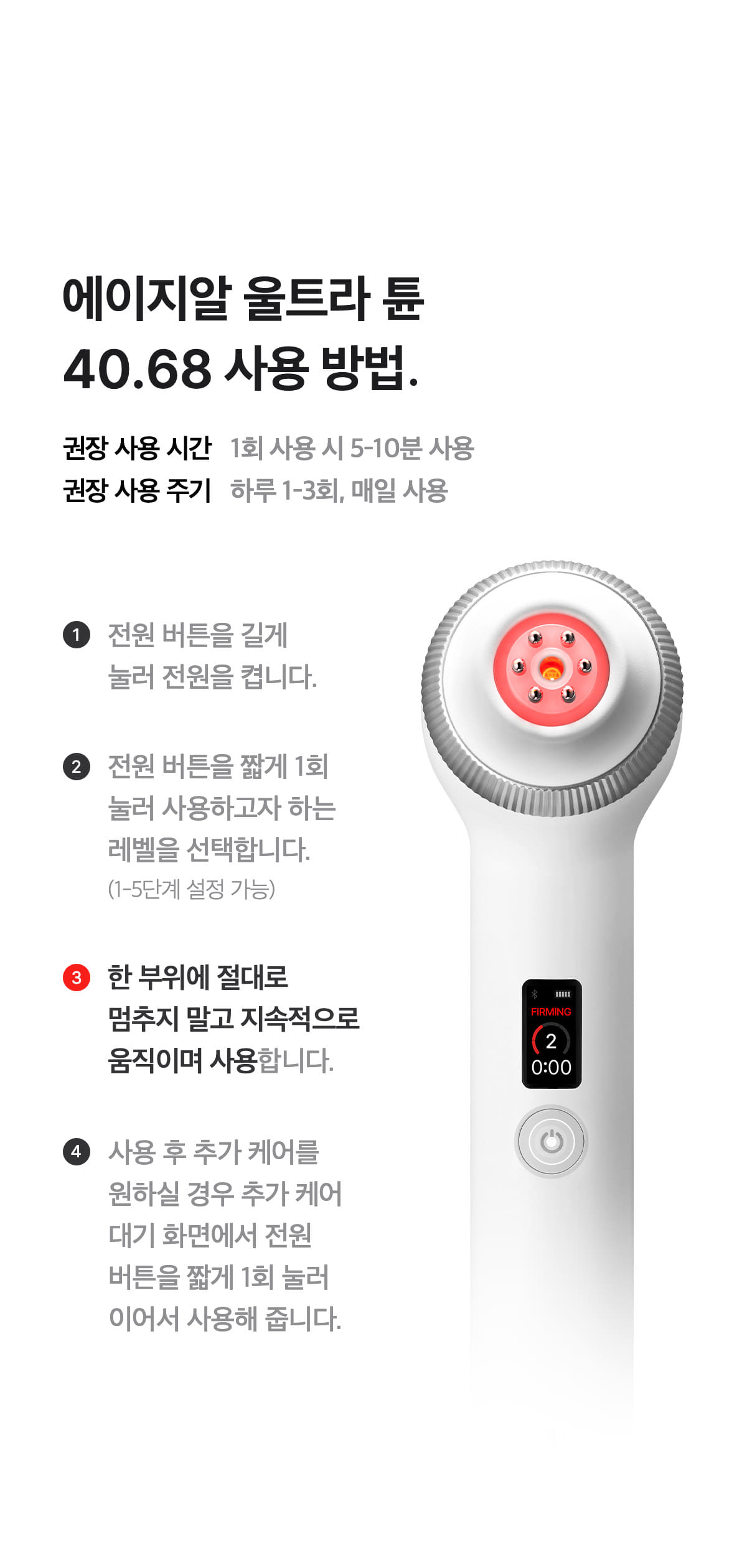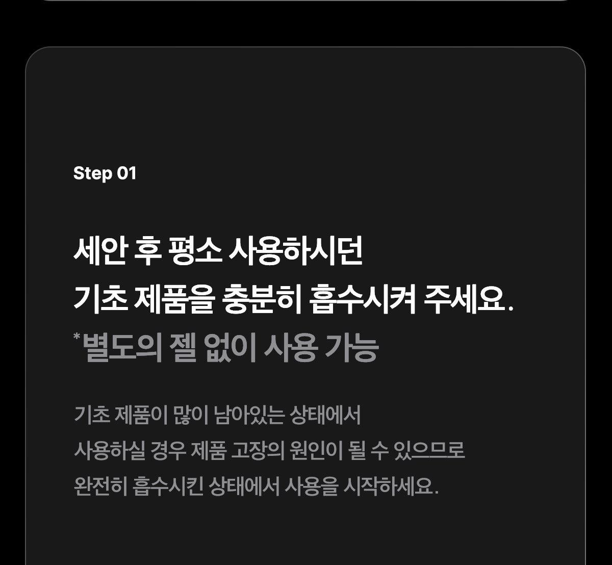 - Skin Preparation: After washing your face, make sure that basic skin care products are sufficiently absorbed. It can be used without a separate gel. To prevent malfunction, allow all basic products to be absorbed into the skin before use.