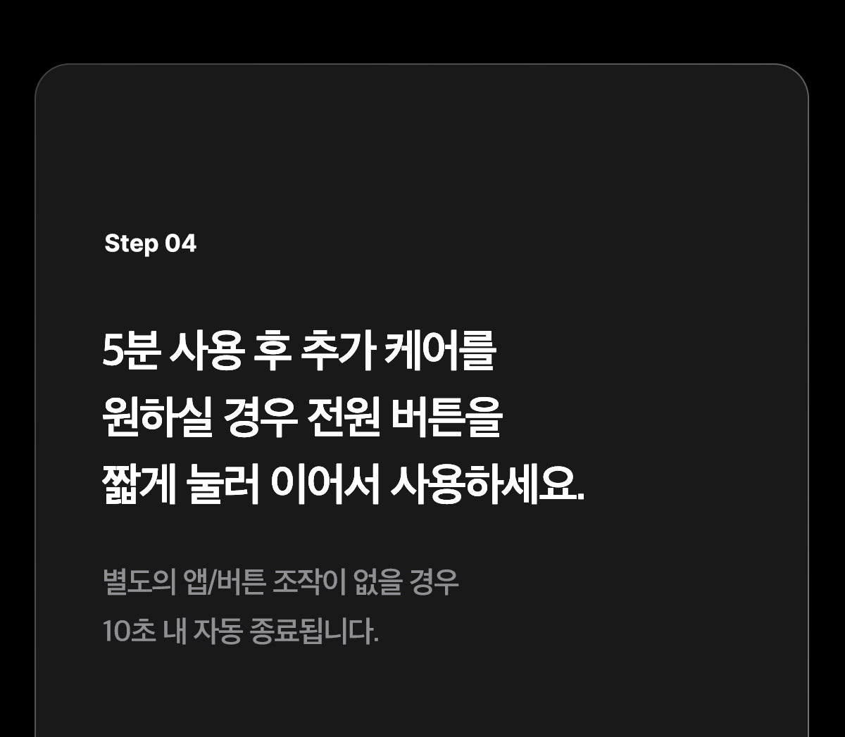 - Additional Care: For additional care after 5 minutes, briefly press the power button once on the standby screen. The device will automatically shut off within 10 seconds if no further action is taken.