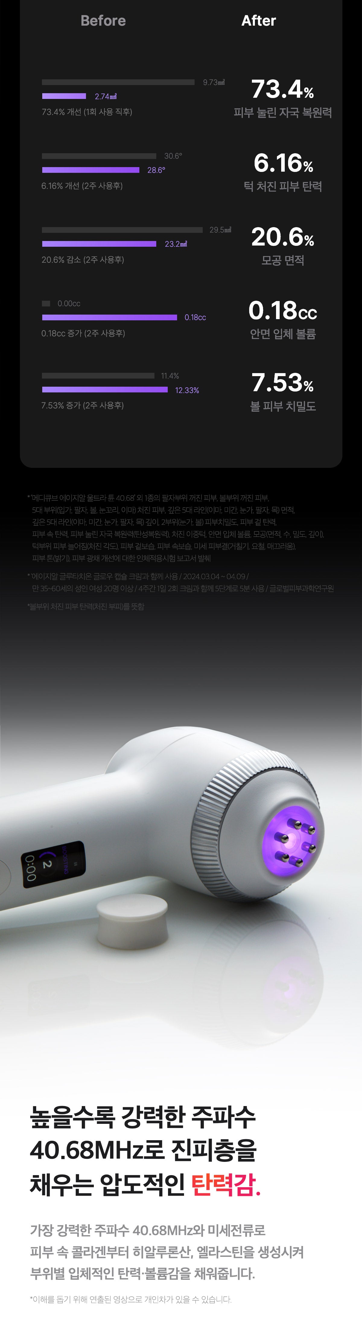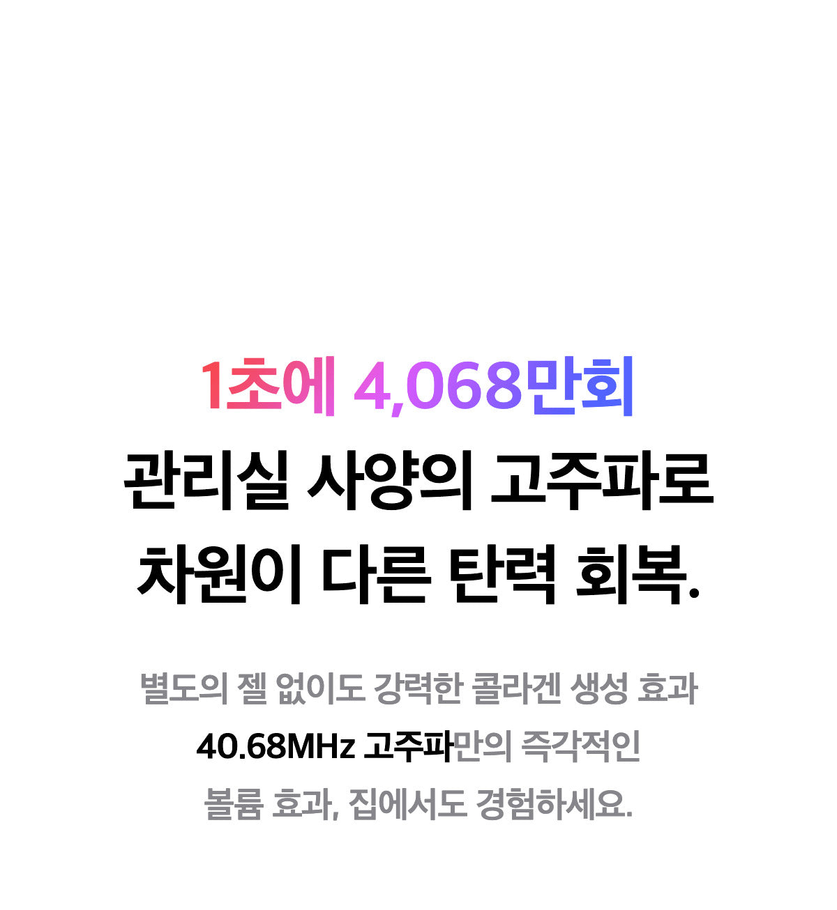 Korea’s first powerful combination of 40.68MHz high frequency and microcurrent.