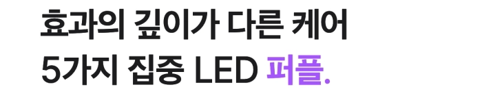 Five concentrated LEDs (purple, blue, green, orange, red) with different wavelength depths provide intensive care for various skin concerns.