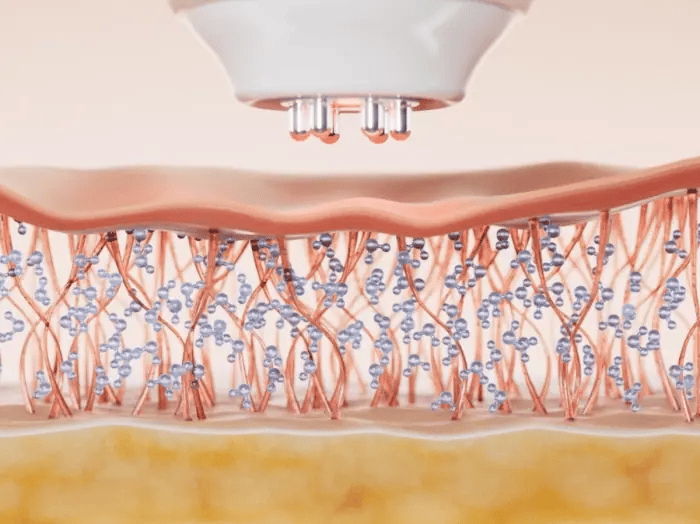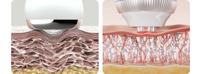Research shows that when collagen is heated to 41-42°C, specific amino acids such as glycine, proline, alanine, and hydroxyproline are activated. This leads to the formation and function of Type I and III collagen. The heating effect of RF energy alters the shape, length, and diameter of collagen fibers to ensure proper formation. It has been demonstrated that heating skin tissue to 42°C induces the production of collagen and elastin.