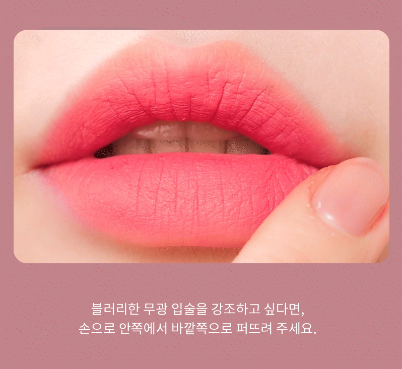 - Blurring Effect: For a more pronounced blurred matte look, gently spread the product from the inside to the outside of your lips using your fingertips.