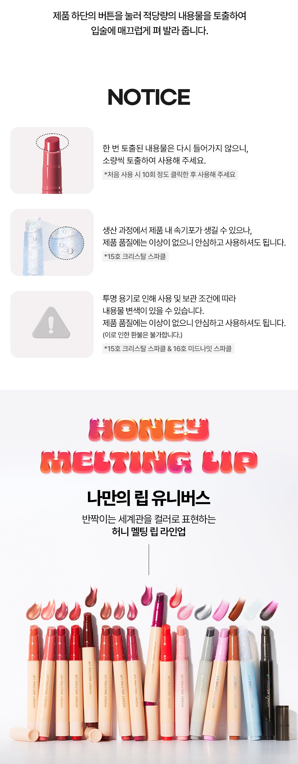 Nature Republic Honey Melting Lip is perfect for those seeking a lip product that combines moisturizing care, a plumping effect, and a variety of shades to suit any mood or occasion. Its innovative formula offers both a cooling sensation and lasting hydration, ensuring your lips look and feel their best all day long.