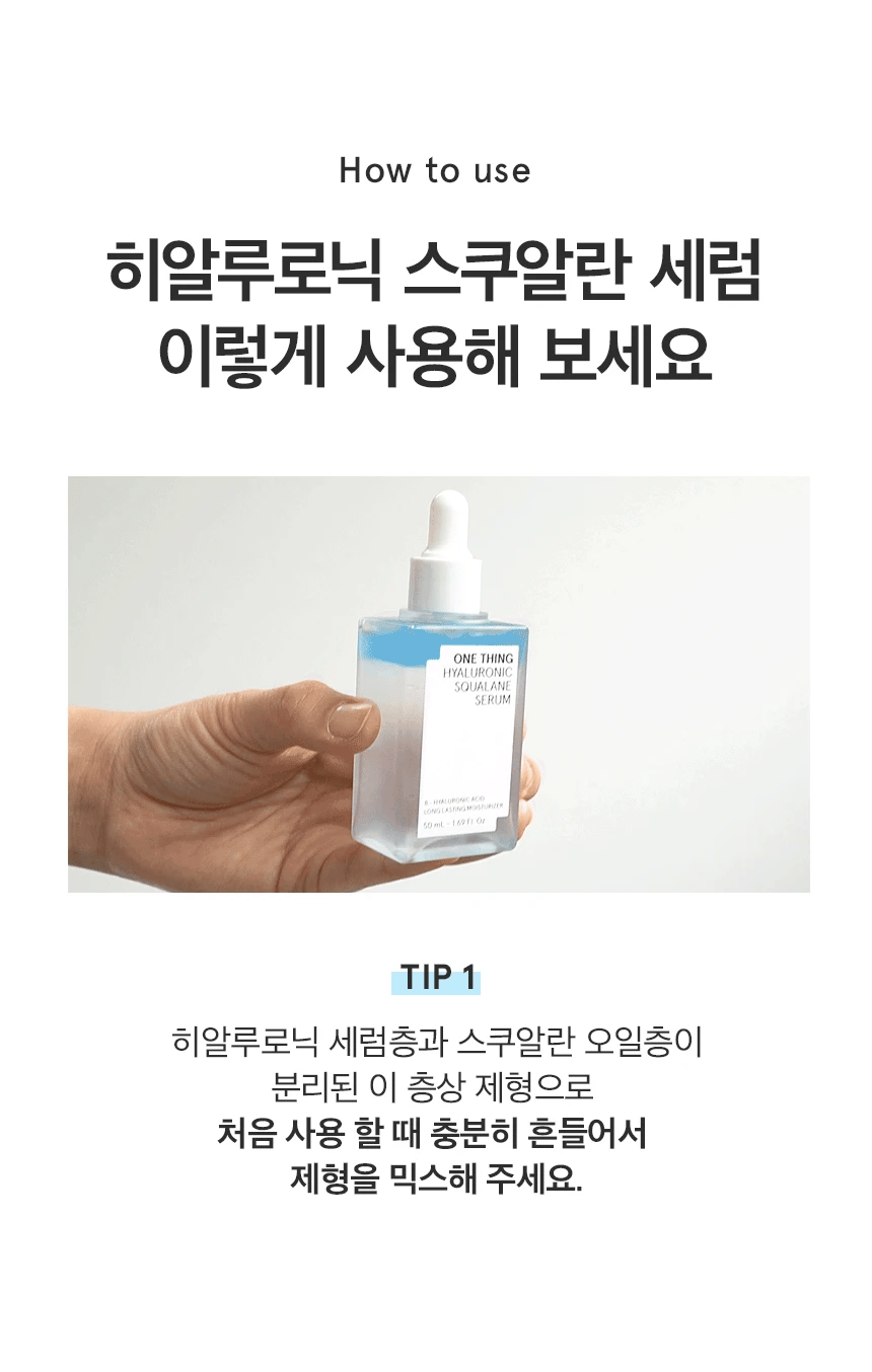 - Before using, shake the bottle well to mix the hyaluronic acid serum layer and squalane oil layer together.