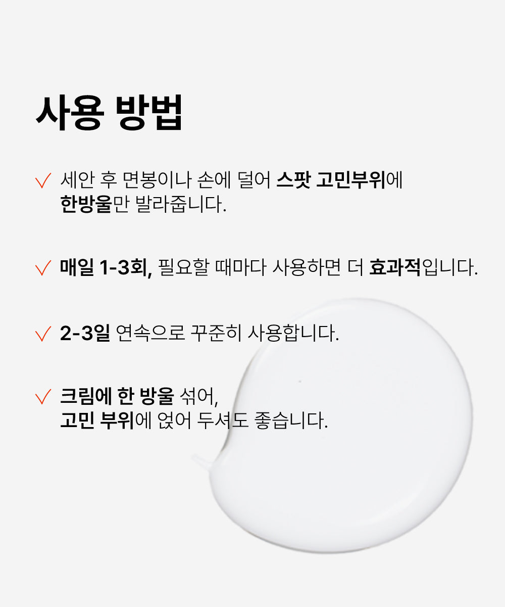 - Spot Application: After cleansing, apply one drop to a cotton swab or fingertips and dab directly onto the spot.