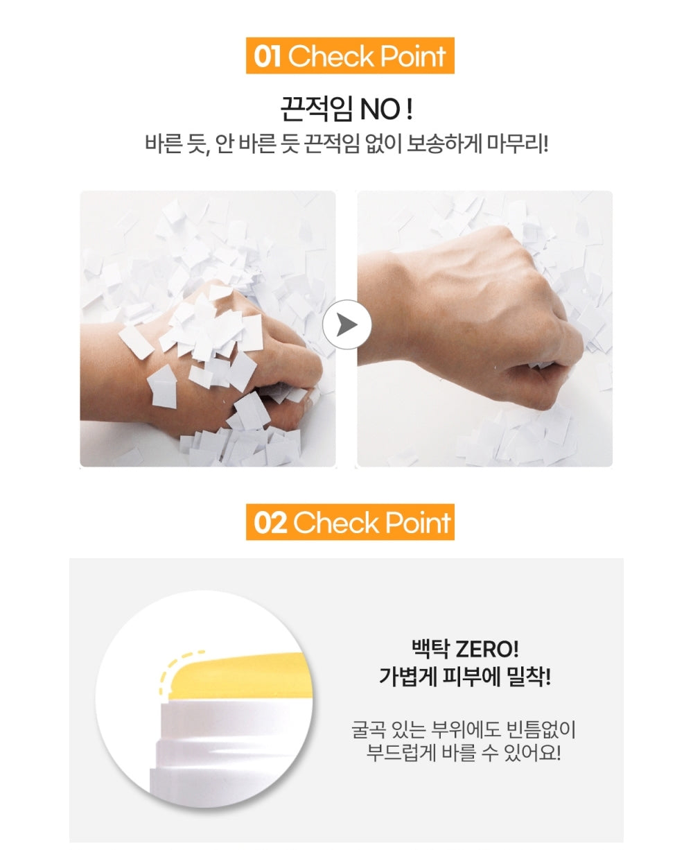 At the last stage of skin care, apply an appropriate amount frequently to all areas that require sun protection. Our sun stick provides a non-sticky, smooth finish. It adheres lightly to the skin and can be applied smoothly even on curved areas!