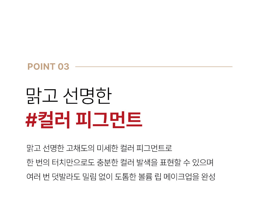- One-Touch Application: Create clear, vivid, and voluptuous lips with just a single application.