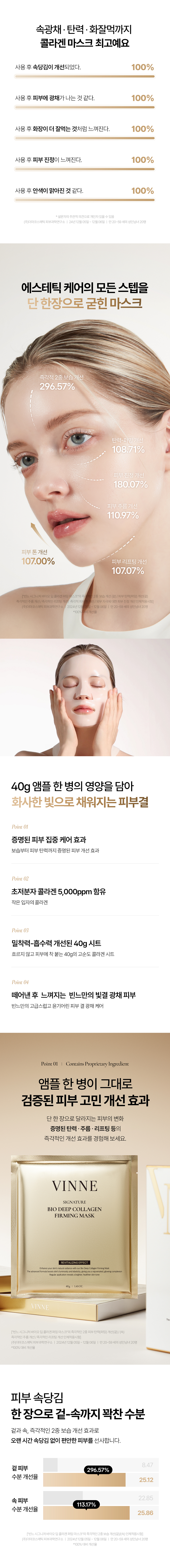 Elevate your skincare with VINNE Bio Deep Collagen Firming Mask. Beyond simple care, this innovative mask awakens your skin’s natural elasticity and radiance from the moment it touches your skin.
