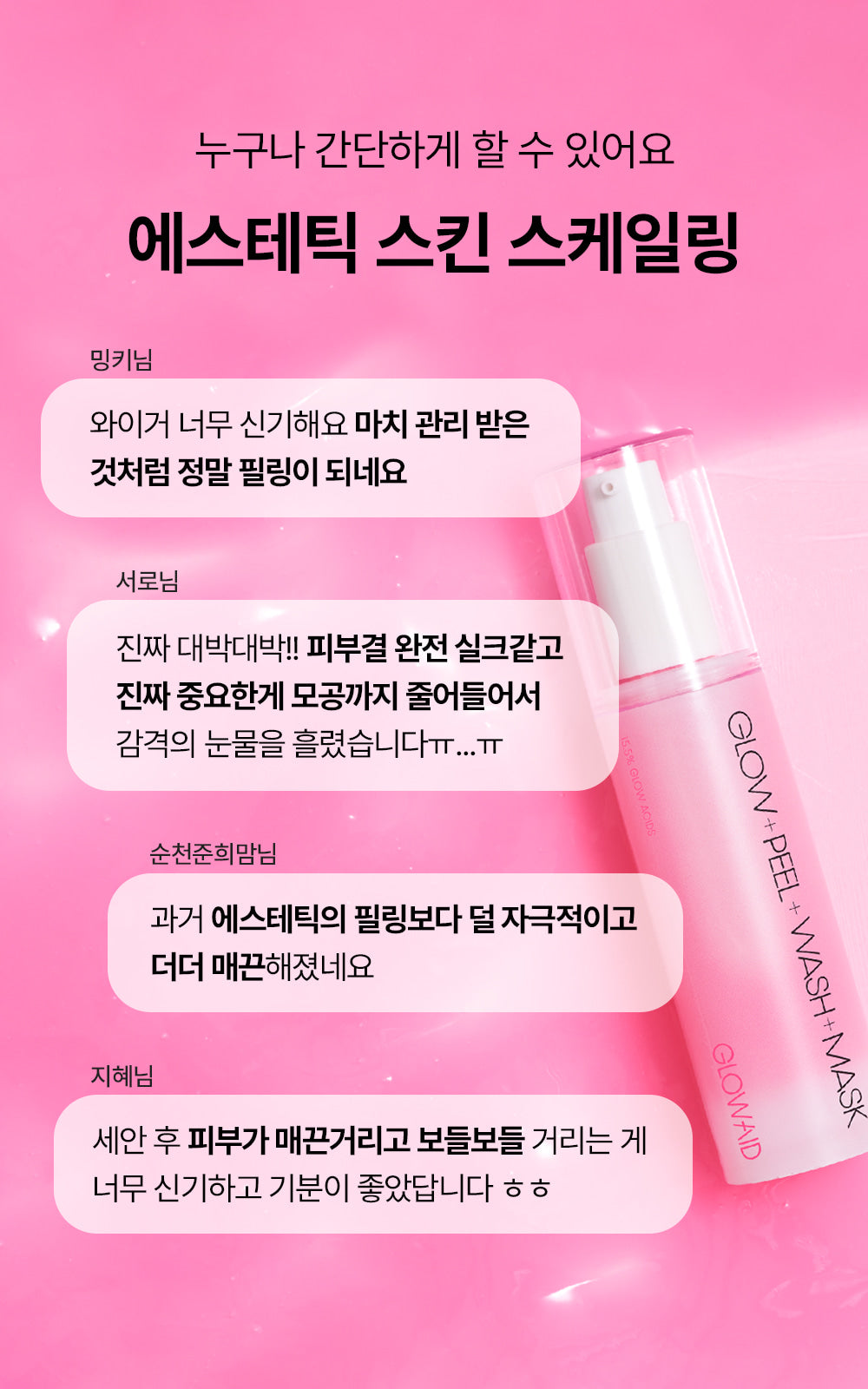 So, I tried out the GLOWAID GLOW+PEEL+WASH+MASK and I’ve got to say, it’s quite something! The whole process is quick as a flash—literally one minute—and the sensation of that tingling feels refreshing rather than intense. After rinsing it off, my skin was honestly smoother than a baby’s bottom! That mix of AHA and BHA really helps slough away dead skin without being harsh; even with sensitive cheeks like mine, there wasn’t any irritation. And who doesn’t love seeing those pesky pores look less pronounced? Plus, knowing it’s naturally pink from Vitamin B12 just adds an extra fun touch!