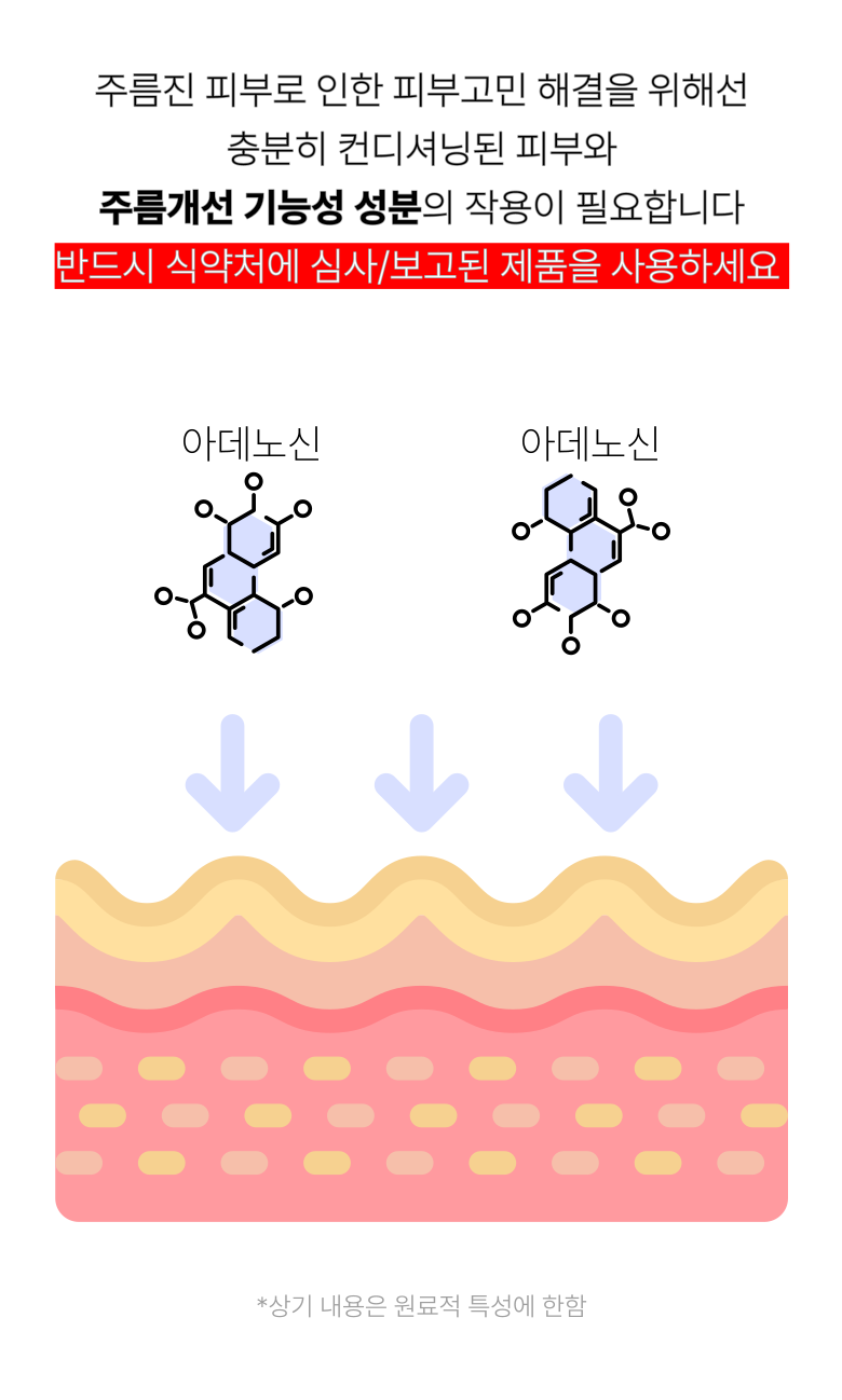 Our product also features Adenosine, a powerful wrinkle improvement ingredient that has received functional certification from the Ministry of Food and Drug Safety. It is backed by an EWG GREEN rating, ensuring its safety and effectiveness.