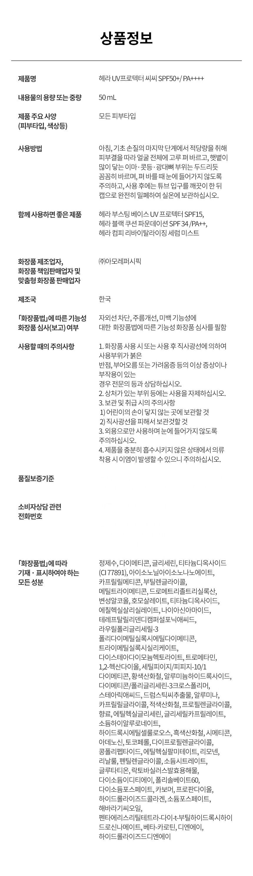 HERA UV Protector CC Sunscreen SPF50+ PA++++ 50ml