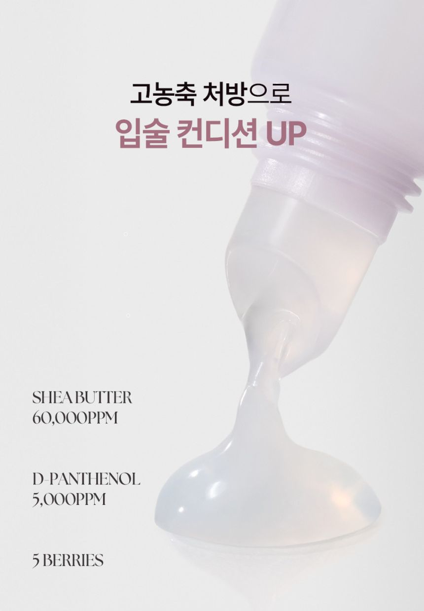 Phytosteryl/Isostearyl/Cetyl/Stearyl/Behenyl Dimer Dilinoleate, Diisostearyl Malate, Hydrogenated Polyisobutene, Polybutene, Butyrospermum Parkii (Shea) Butter(60,000ppm), Hydrogenated Poly(C6-14 Olefin), Microcrystalline Wax, Octyldodecanol, Polyglyceryl-3 Polyricinoleate, 1,2-Hexanediol, Synthetic Wax, Panthenol(5,000ppm), Vaccinium Macrocarpon (Cranberry) Fruit Extract, Fragaria Chiloensis (Strawberry) Fruit Extract, Rubus Idaeus (Raspberry) Fruit Extract, Vaccinium Angustifolium (Blueberry) Fruit Extract, Cornus Officinalis Fruit Extract, Euterpe Oleracea Fruit Extract, Sambucus Nigra Fruit Extract, Schisandra Chinensis Fruit Extract, Panax Ginseng Berry Extract, Vaccinium Myrtillus Fruit Extract, Maltodextrin, Saccharide Hydrolysate, Disteardimonium Hectorite, Propylene Carbonate, Water