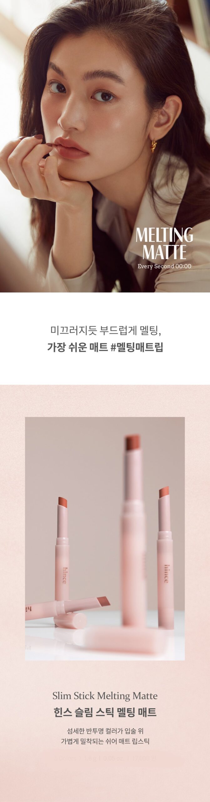 The hince Slim Stick Melting Matte lipstick exceeded my expectations with its effortless application and unique melting matte texture. I love how it glides smoothly across my lips, leaving a light feel without any heaviness. The translucent finish is perfect for achieving a natural look while still adding a subtle pop of color. I’ve layered it for more intensity on days when I want to elevate my makeup, and the easy blur effect has allowed me to achieve that soft-focus lip look effortlessly. Overall, it’s become a staple in my daily routine!