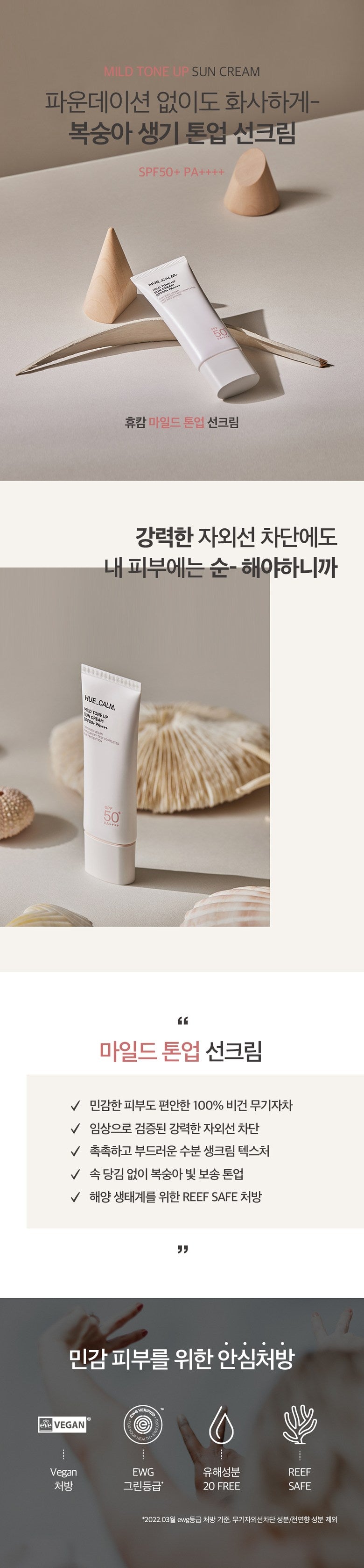 Enjoy radiant, protected, and healthy-looking skin with HUE_CALM Mild Tone Up Sun Cream SPF50+ PA++++!