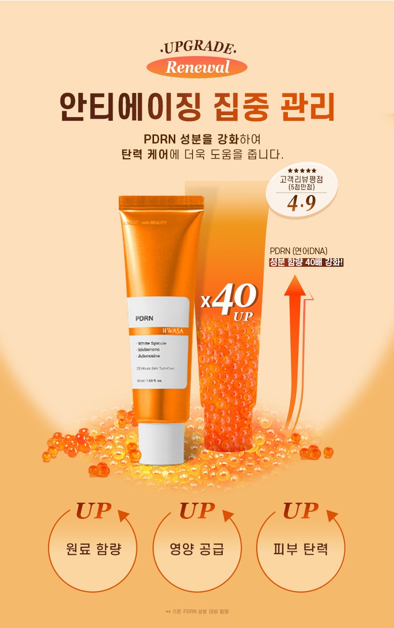 - PDRN Ingredient Boost: Strengthened PDRN (salmon DNA) content is increased by 40 times, enhancing elasticity care.