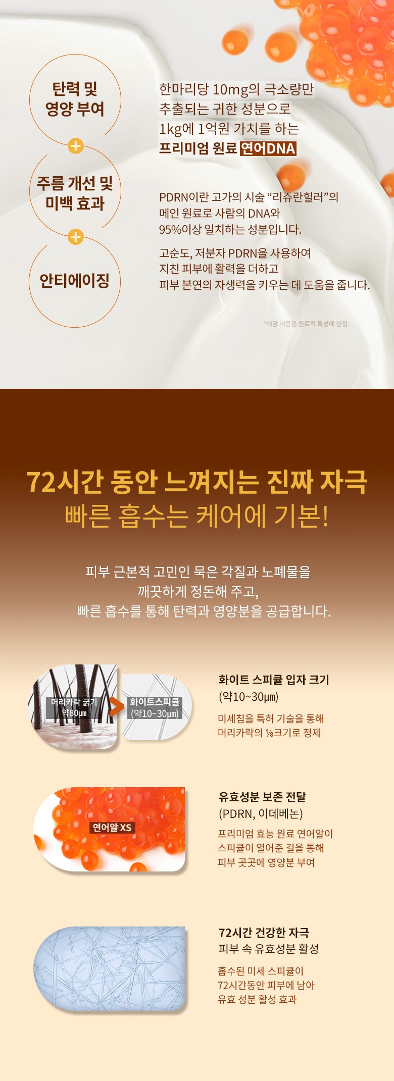 - Active Ingredient Delivery: PDRN and idebenone are delivered effectively to various skin areas through pathways opened by salmon egg spicules.