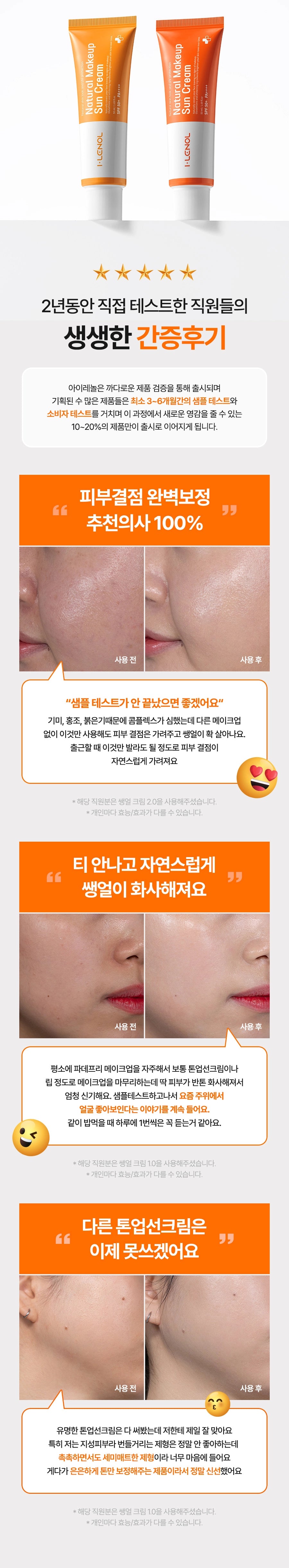 ILENOL Natural Makeup Sun Cream is a game changer for anyone with skin concerns. The SPF 50+ PA++++ offers solid UV protection while also addressing redness and blemishes effectively. I noticed significant improvement in my skin tone within days of using it; the whitening effect was noticeable but natural, not overpowering. Plus, its lightweight texture absorbs quickly without leaving any oily residue, which has been ideal for my combination skin. This cream has become an essential step in my daily routine as it creates a smooth canvas for makeup.