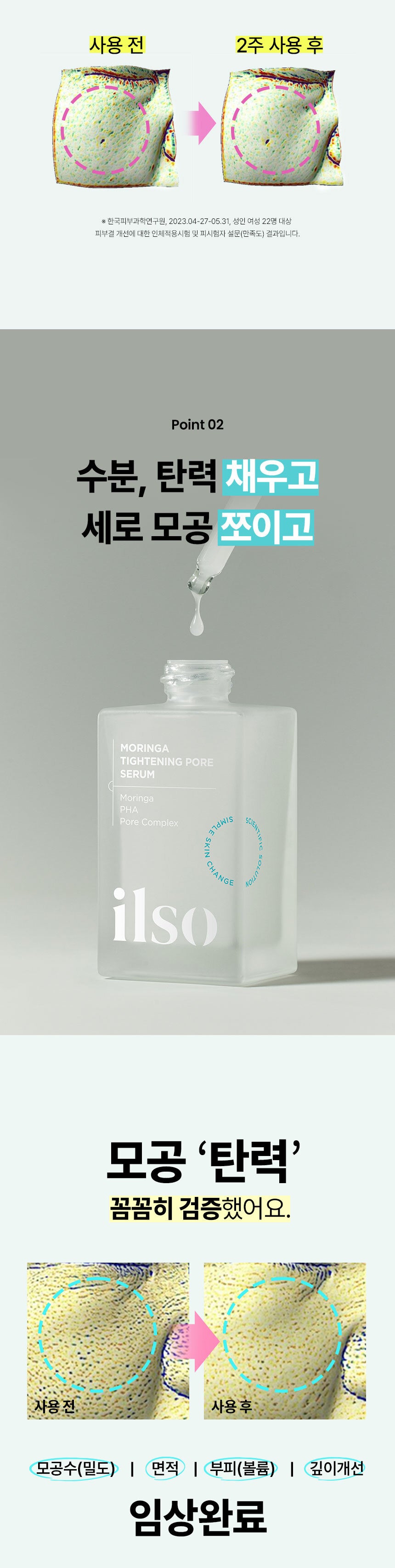 After using the ilso Moringa Tightening Pore Serum for a month, I noticed remarkable differences! My pores shrank considerably. A superb solution!