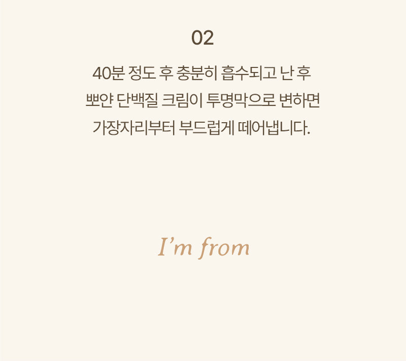 - Wait approximately 40 minutes. Once the mask has fully absorbed and transformed into a transparent layer, gently peel it off from the edges.