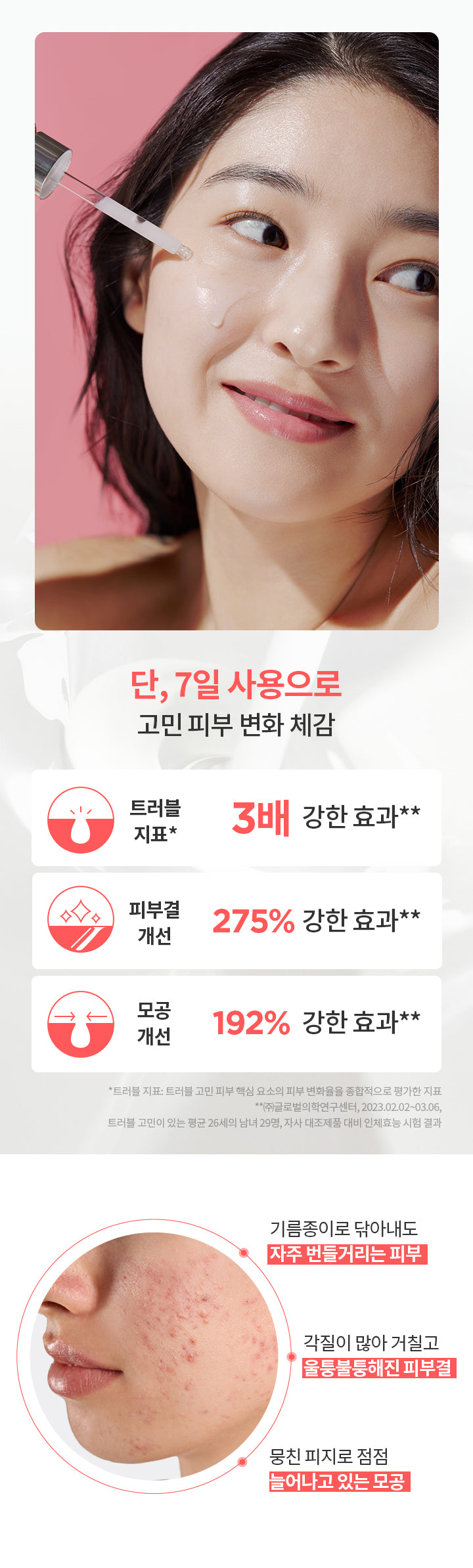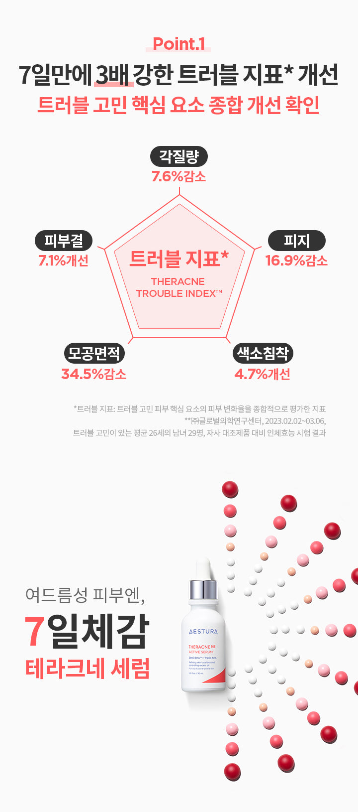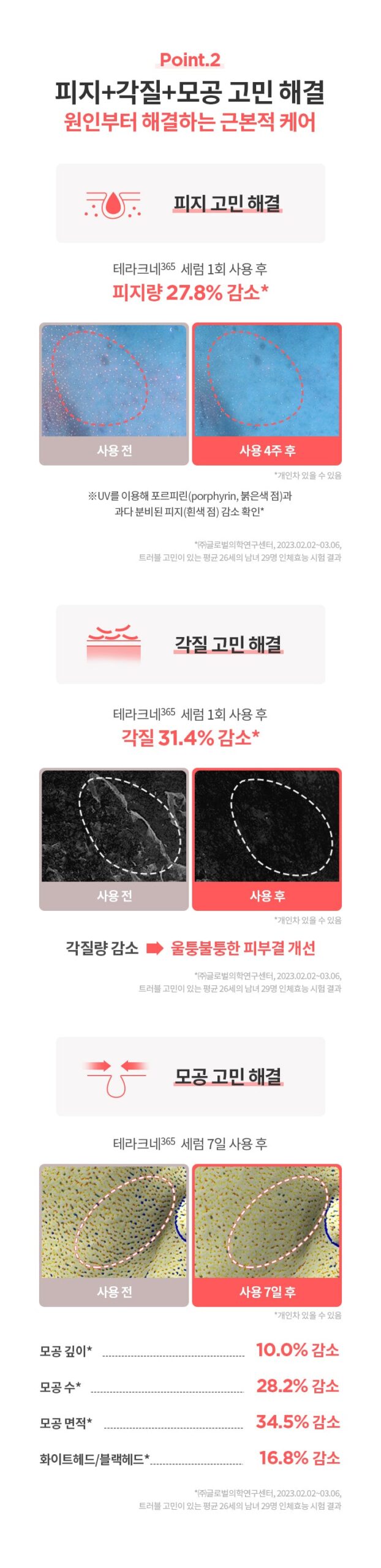 - Point 1: Observe a threefold improvement in various skin trouble indicators in just 7 days, including reduction in dead skin cells, enhanced skin texture, minimized pore area, pigmentation improvement, and sebum control.