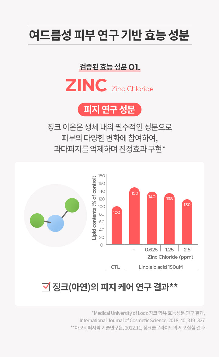 - Zinc Sebum Research Ingredients: Utilizing the essential role of zinc ions in the skin, this ingredient effectively regulates sebum production while providing a calming effect.