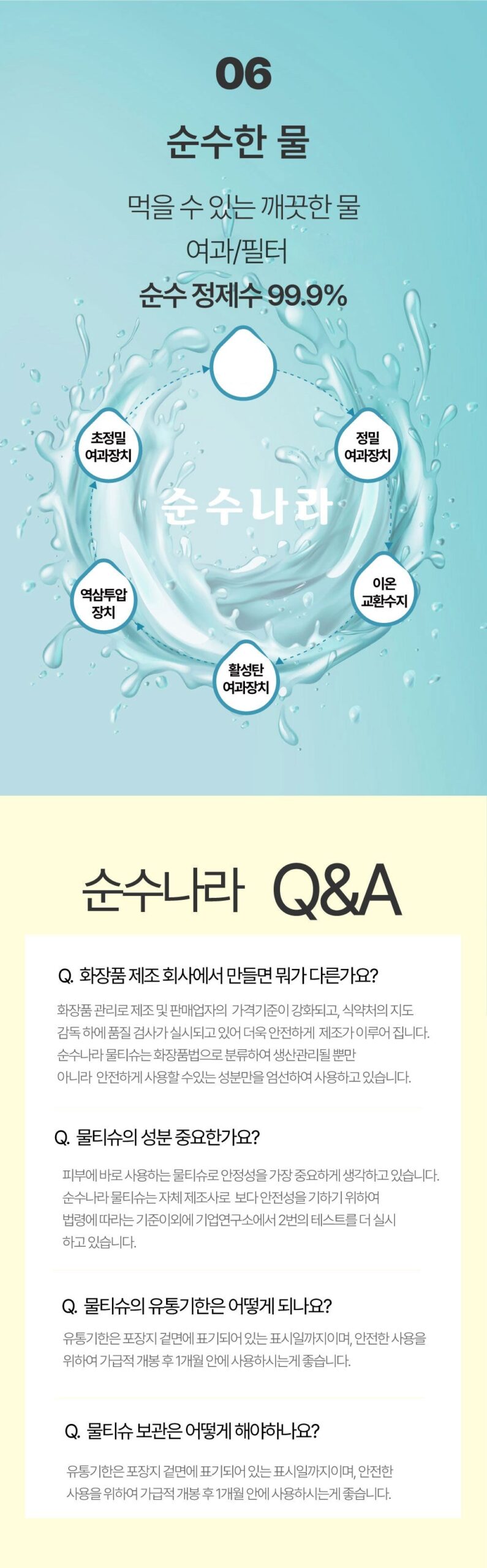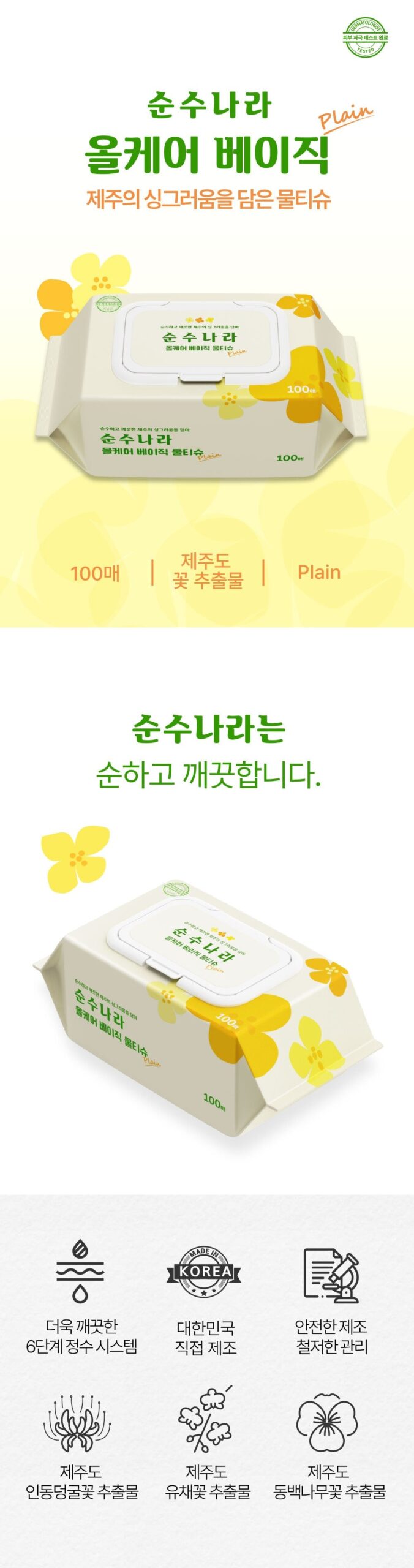 Experience the pure and refreshing care of Jeju with our premium wet tissues, made with a 6-step water purification system for ultimate cleanliness and skin safety.