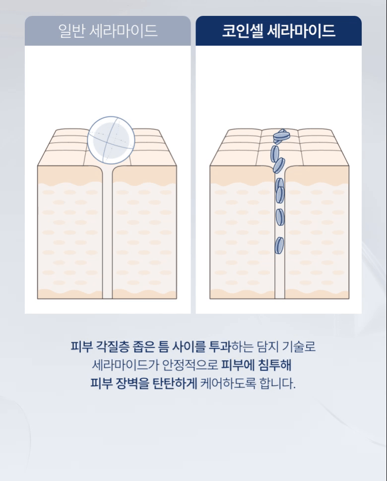 The advanced Coincell technology allows nano-sized, flat coin-shaped ceramides to penetrate deeply into even the smallest gaps of your skin, reinforcing its moisture barrier effectively.