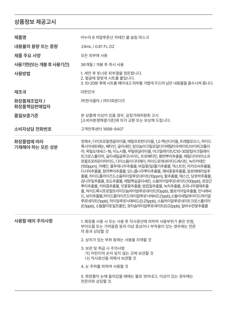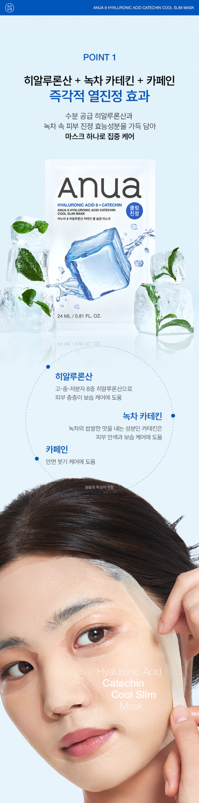 15 reviews for Anua 8 Hyaluronic Acid Catechin Cool Slim Mask 24ml*10 Sheets