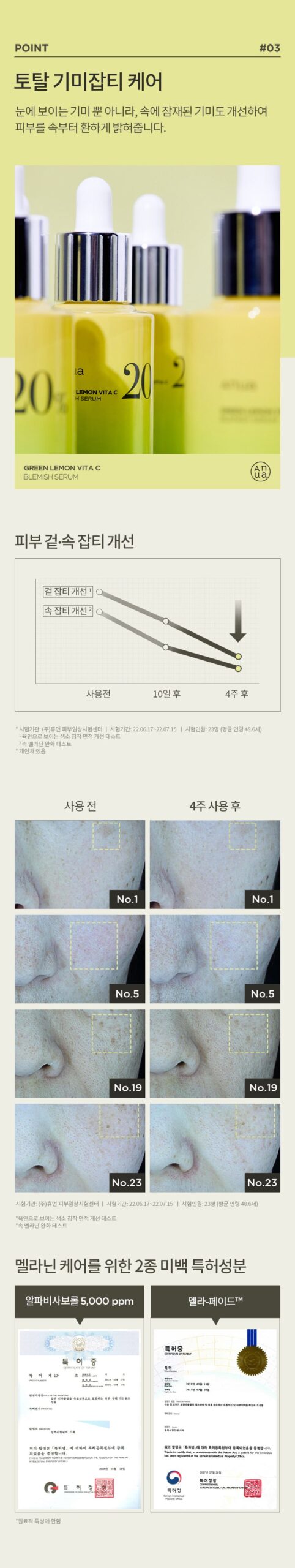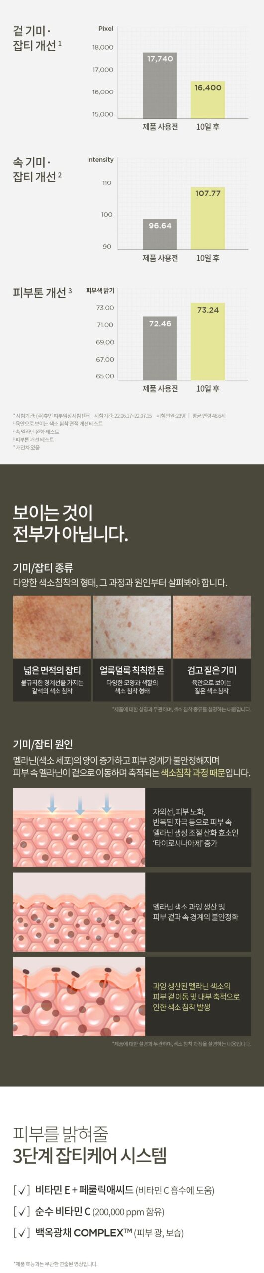 – Improvement of pigmentation area visible to the naked eye, test completed