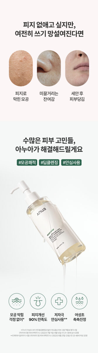 After using Anua Heartleaf Cleansing Oil for two weeks, my skin finally feels clean and fresh. Blackheads are diminished! It gently clears away grime while providing a calm feel—no irritation at all!