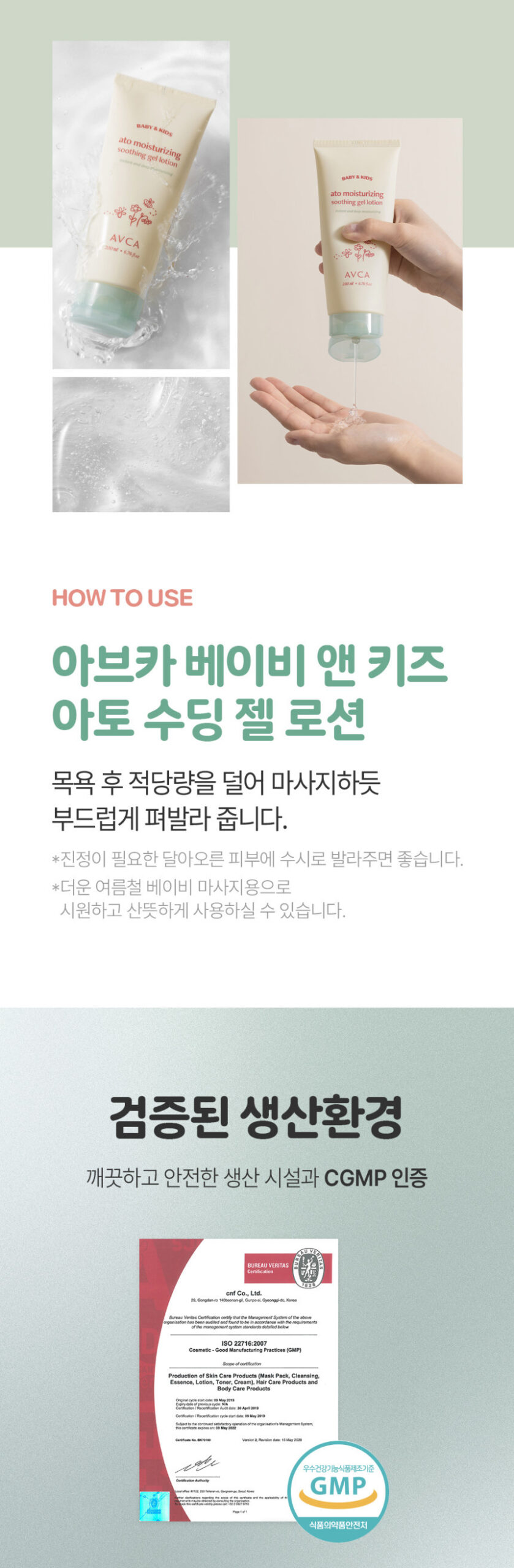 AVCA Baby Kids Ato Moisturizing Soothing Gel Lotion 200ml