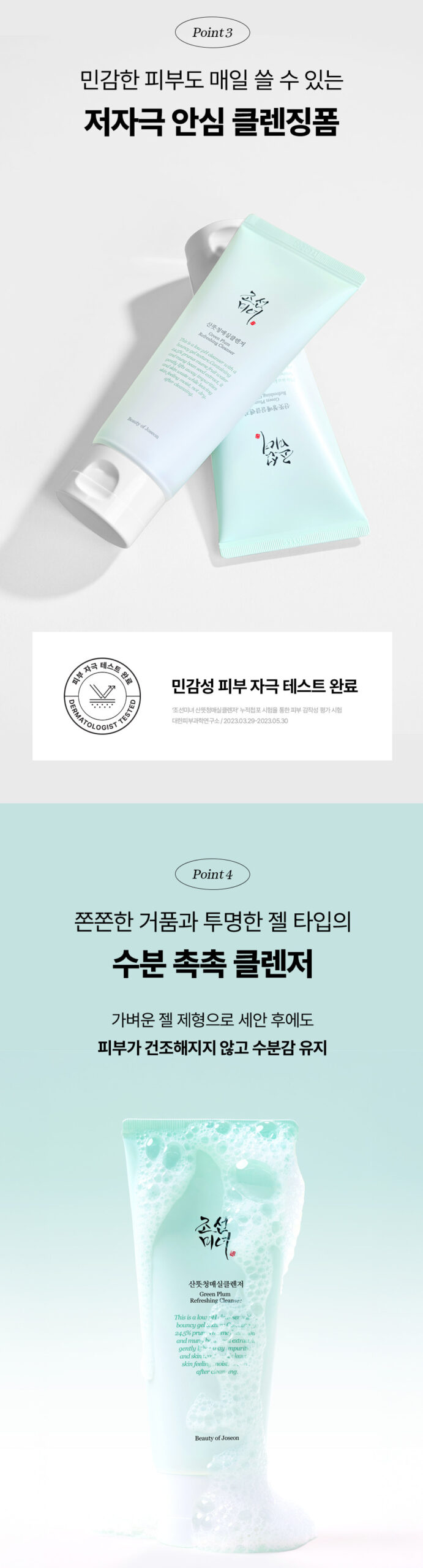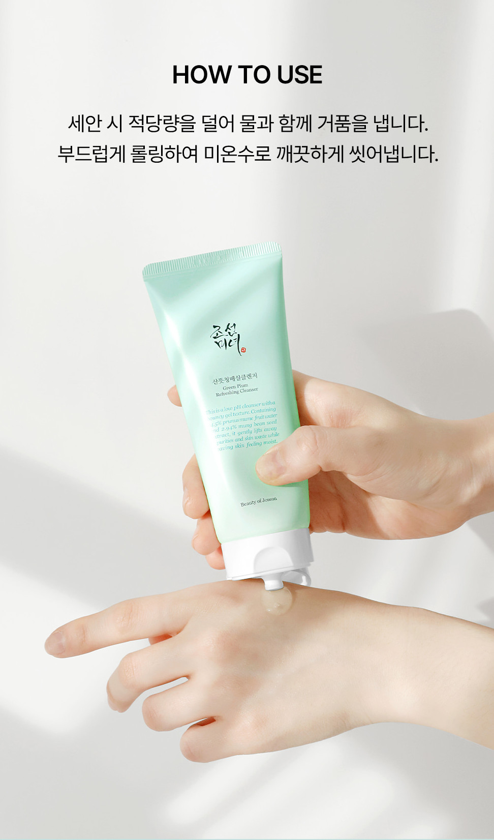 Extracts from plum and mung bean, which have long been used as Hanbang ingredients, help give you a refreshing and moisturizing cleansing.