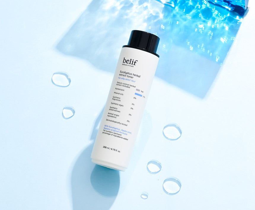 Discover the perfect toner for oily skin with the belif Eucalyptus Herbal Extract Toner. This refreshing, hydrating, and mattifying toner is formulated with eucalyptus and apple mint extracts, which help protect and moisturize the skin while keeping it comfortably matte.