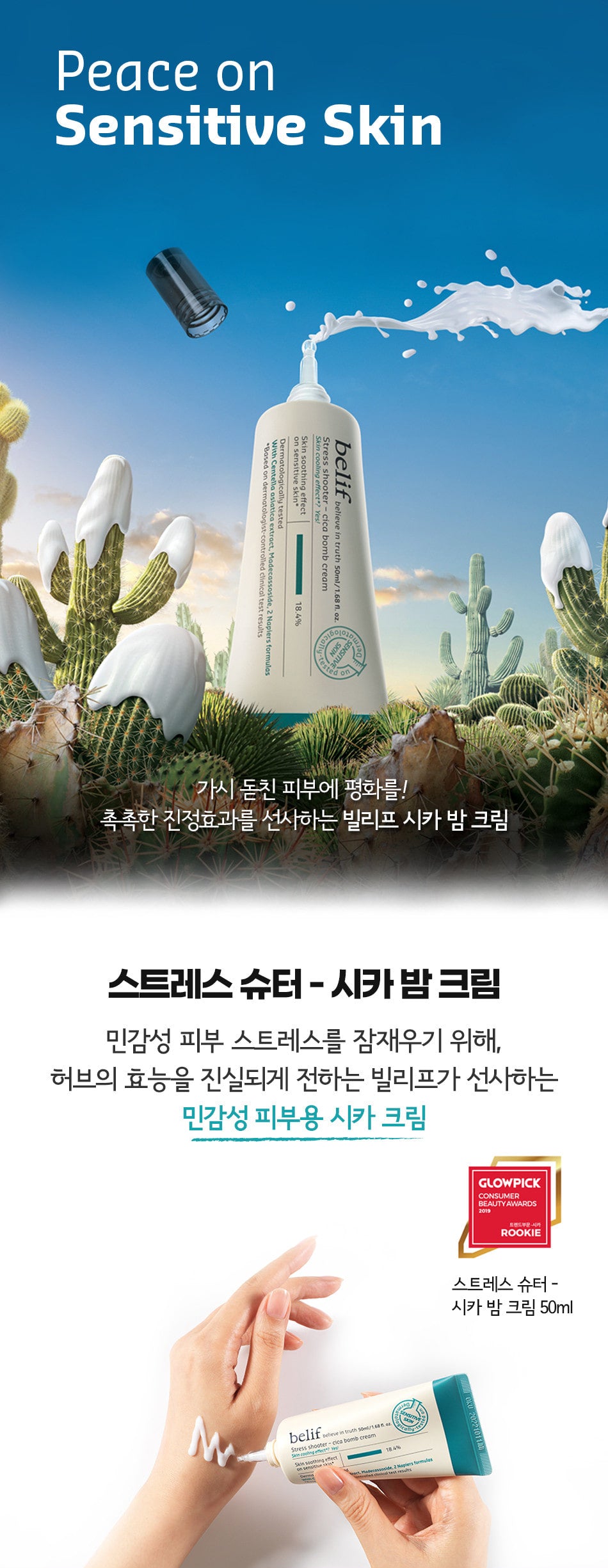 The Stress Shooter – Cica Bomb Cream is meticulously crafted for sensitive skin. It effectively reduces skin sensitivity caused by environmental factors, ensuring the skin remains hydrated and comfortable.