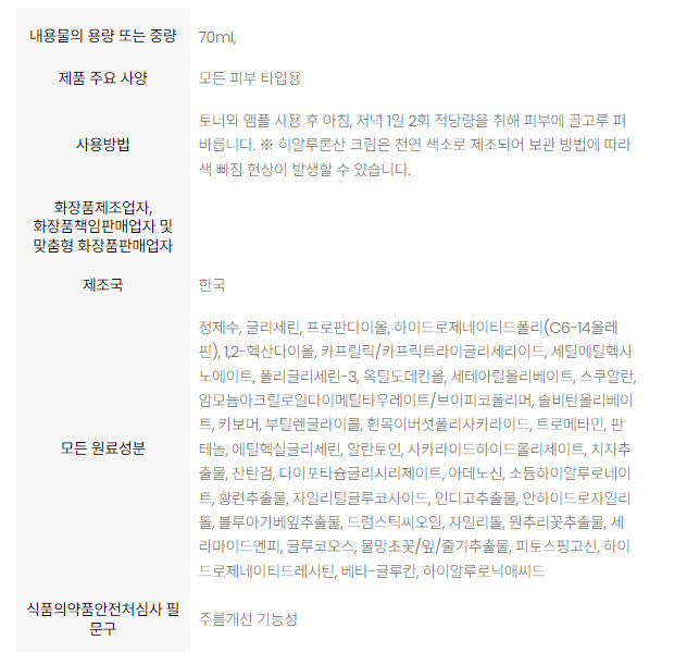 For maximum hydration, apply an appropriate amount of the cream in the morning and evening after toning and applying an ampoule. For an extra hydration boost, precede the cream with a moisturizing mask pack to lock in moisture for extended periods.