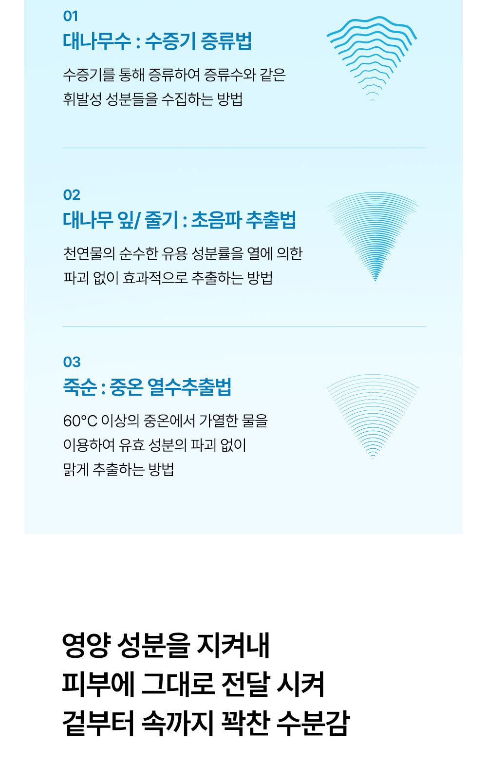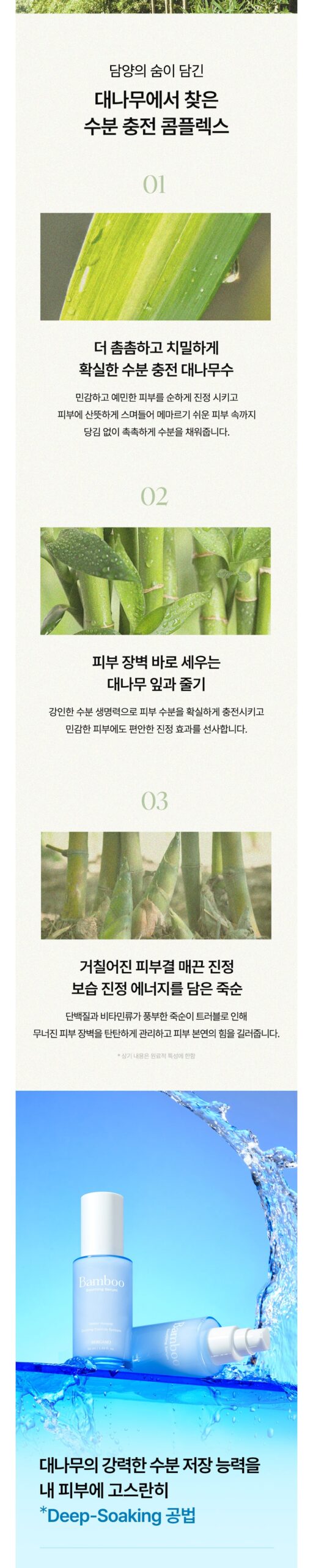 - Moisture Supply & Strengthening: Bamboo water deeply hydrates and strengthens the skin’s natural barrier.